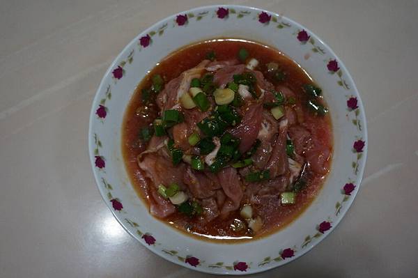 放一點油爆香---->洋蔥炒出味道後(依個人口味添加鹽巴)---->加入泡肉一同拌炒即可